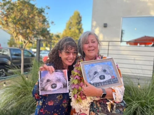 Happy Clients with a very happy family member. This Christmas present was a fun one to create. Look at those EARS! I’m thrilled the colors of her ears matched their PJ’S… fun fun!